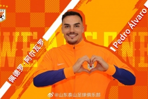 体育资讯2月15日讯 据葡萄牙媒体《球报》报道称,阿尔瓦罗与山东泰山签约2年。