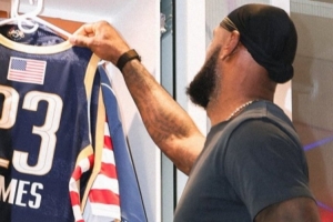 增加紧迫感!湖人官方晒东詹全明星战袍 球衣背后印有各自国旗!