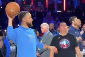 这队友绝绝子!库里因伤缺席全明星正赛 但热身时认真帮队友传球