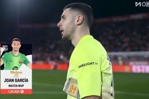 7次扑救难挽败局!霍安·加西亚当选巴萨vs赫罗纳全场最佳球员