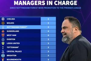 体育资讯2月12日讯 诺丁汉森林官方宣布,主帅戴奇下课。德国转会市场统计了诺丁汉森林2022-2023赛季开始征战英超以来,英超各队的主帅人数,狼队7人最多,切尔西6人第二,诺丁汉森林4人并列第三,即将任命第5位主帅。