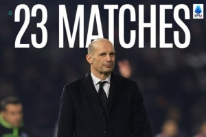 意甲官方也晒出阿莱格里海报,配文写道:“阿莱格里执教下的AC米兰是目前五大联赛最长不败场次保持者。”