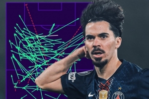 中场核心!维蒂尼亚欧冠场均108次成功传球 是本赛季唯一破百球员
